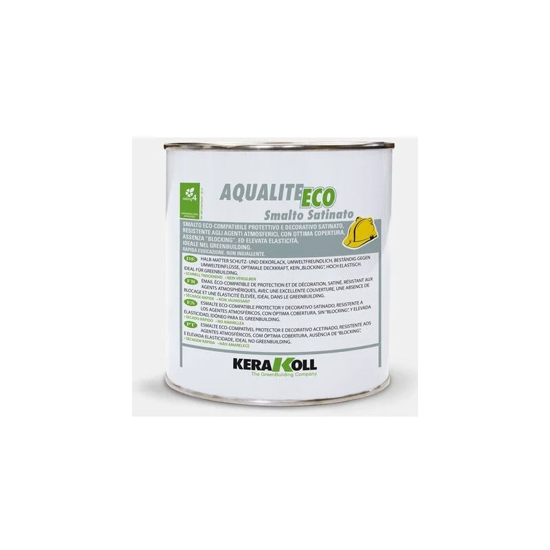 Aqualite Eco Smalto Satinato resistente, inodore, non ingiallente, ad asciugatura rapida.A base di resine acriliche all'acqua, idoneo per legno, ferro, intonaci e rasanti, calcestruzzo, cartongesso, gesso e pannelli multistrato.